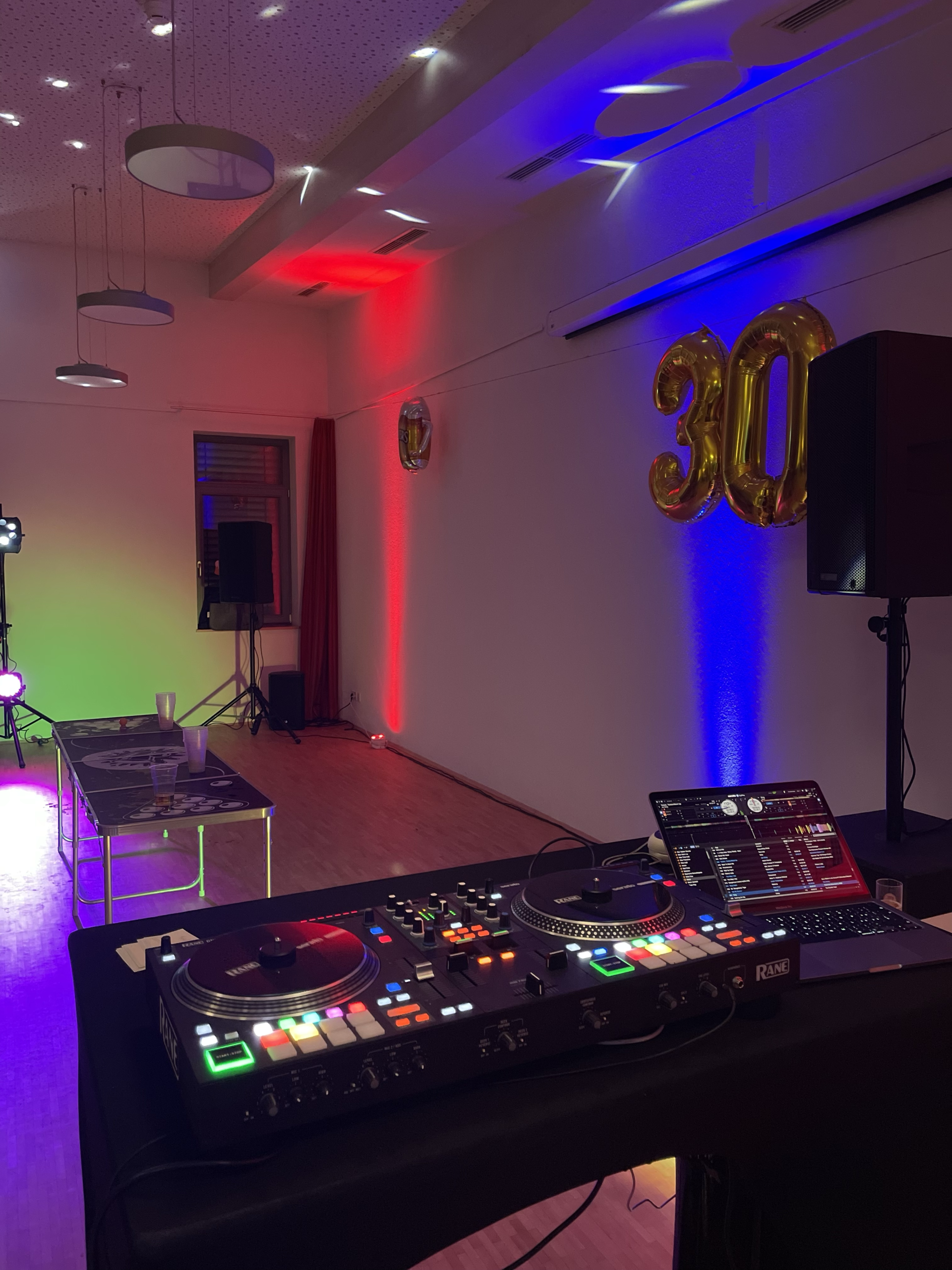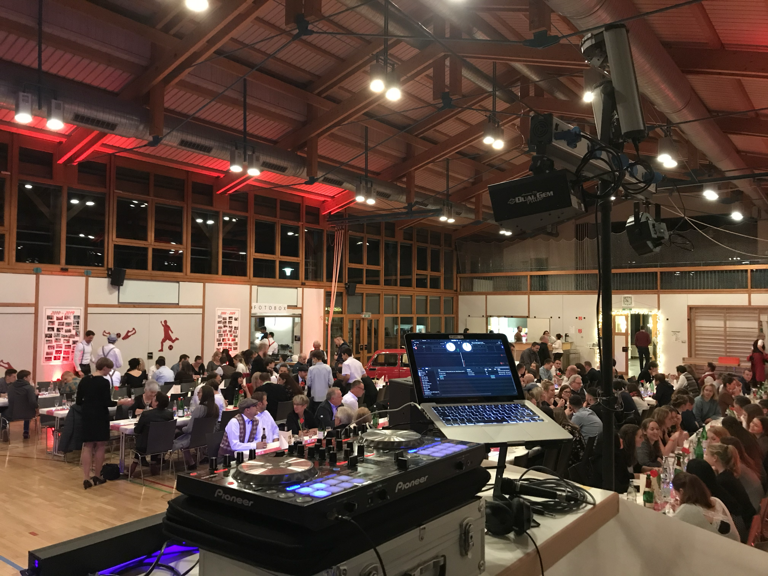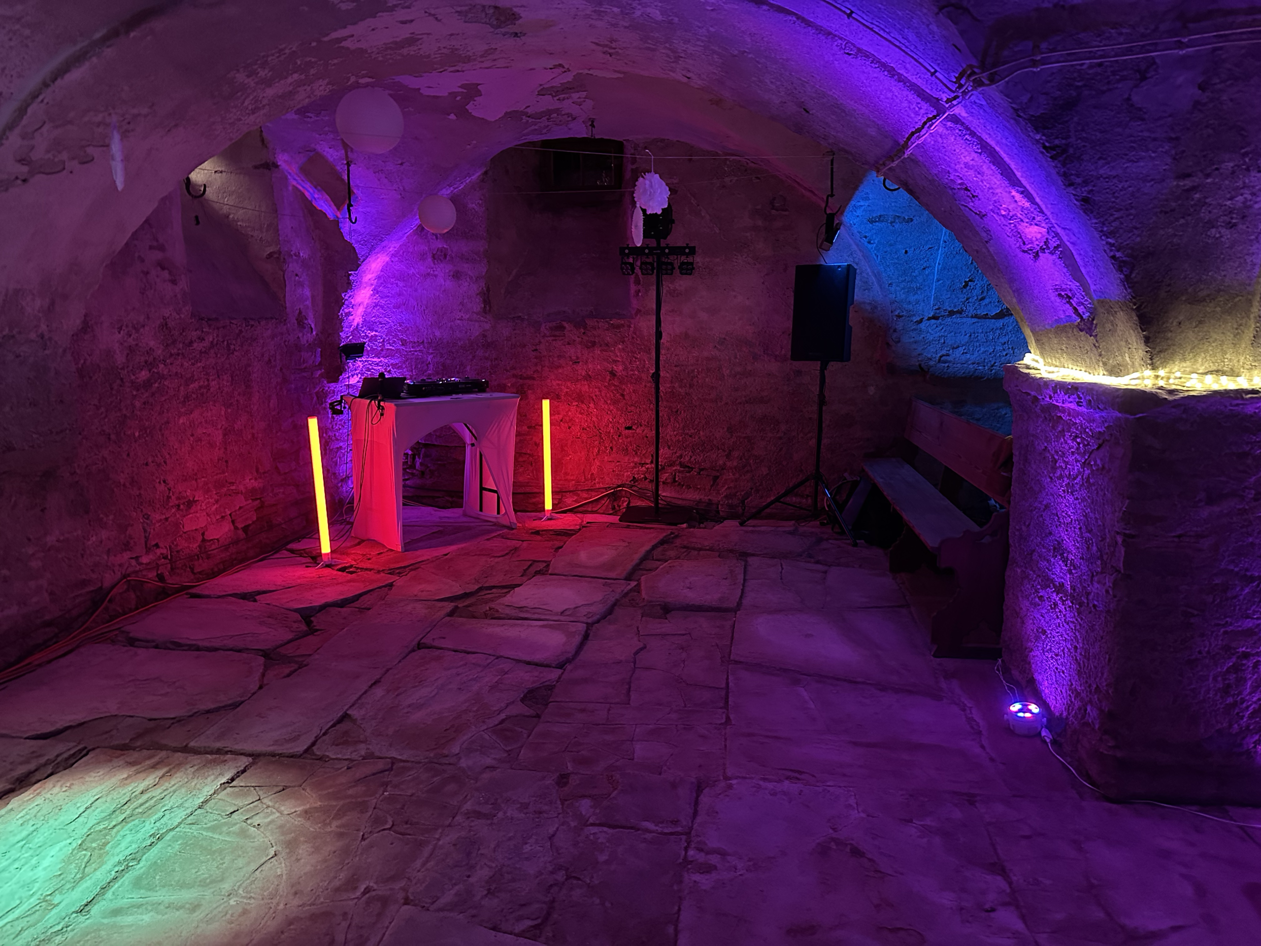 Die Beleuchtung für die Raumatmosphäre sowie für die Tanzfläche richte ich ganz nach deinen Wünschen ein. Sollte zusätzliches Licht für andere Bereiche benötigt werden, etwa für den Garten oder große Räume, kann ich auf langjährige Partner zurückgreifen, um deine Wünsche perfekt umzusetzen – egal ob für kleine oder große Veranstaltungen.